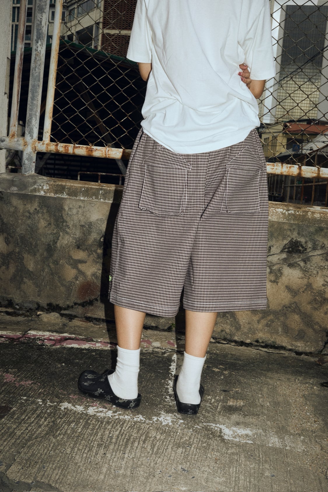 アーティストでもありタイのセレクトショップのオーナーでもあるTULREXXが手掛けるブランドSLOW DOWN SONICから張りのあるチェック柄のコットンショーツが入りました。