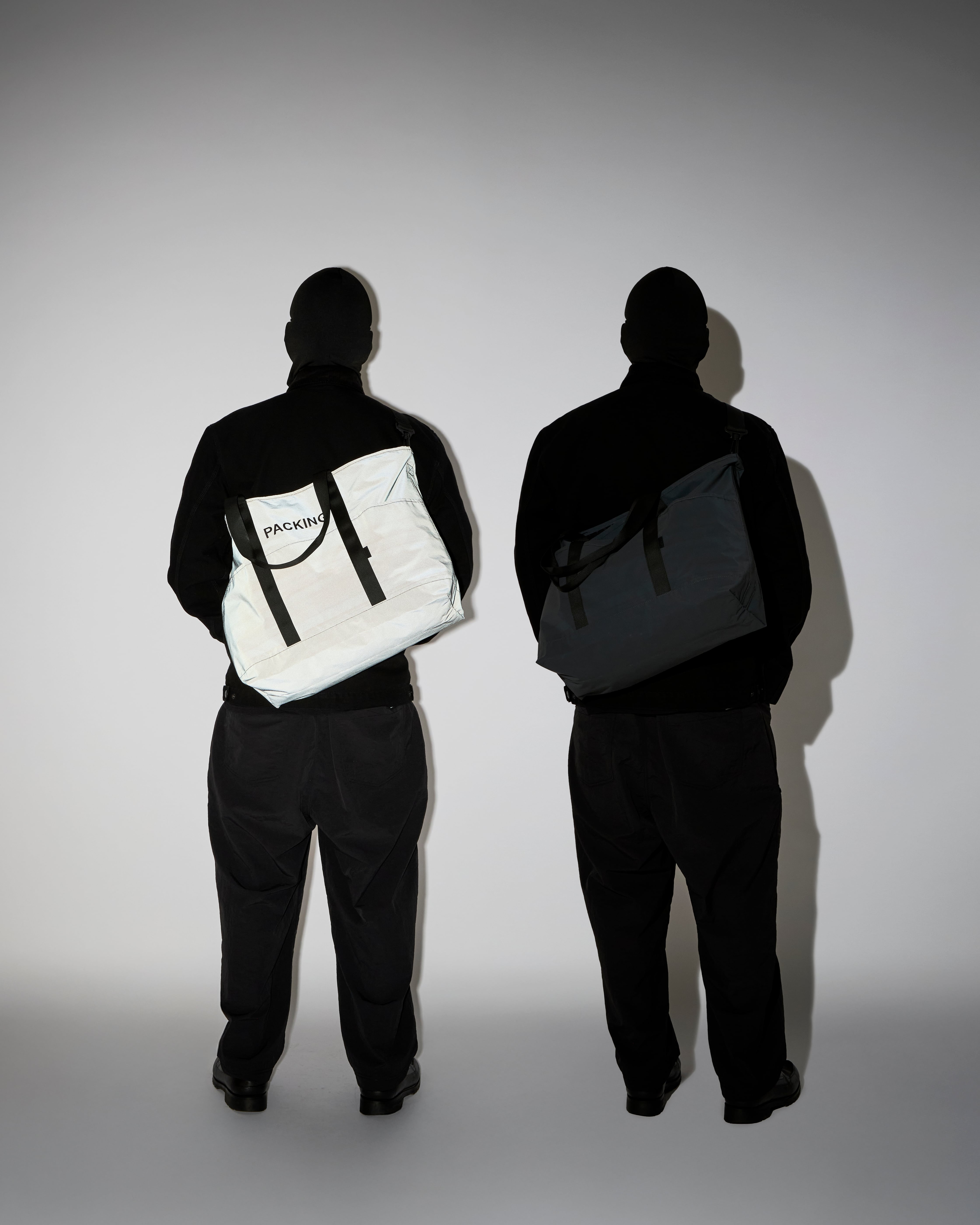 PACKINGからブラックリフレクター素材のデカ目トートバッグが入りました。