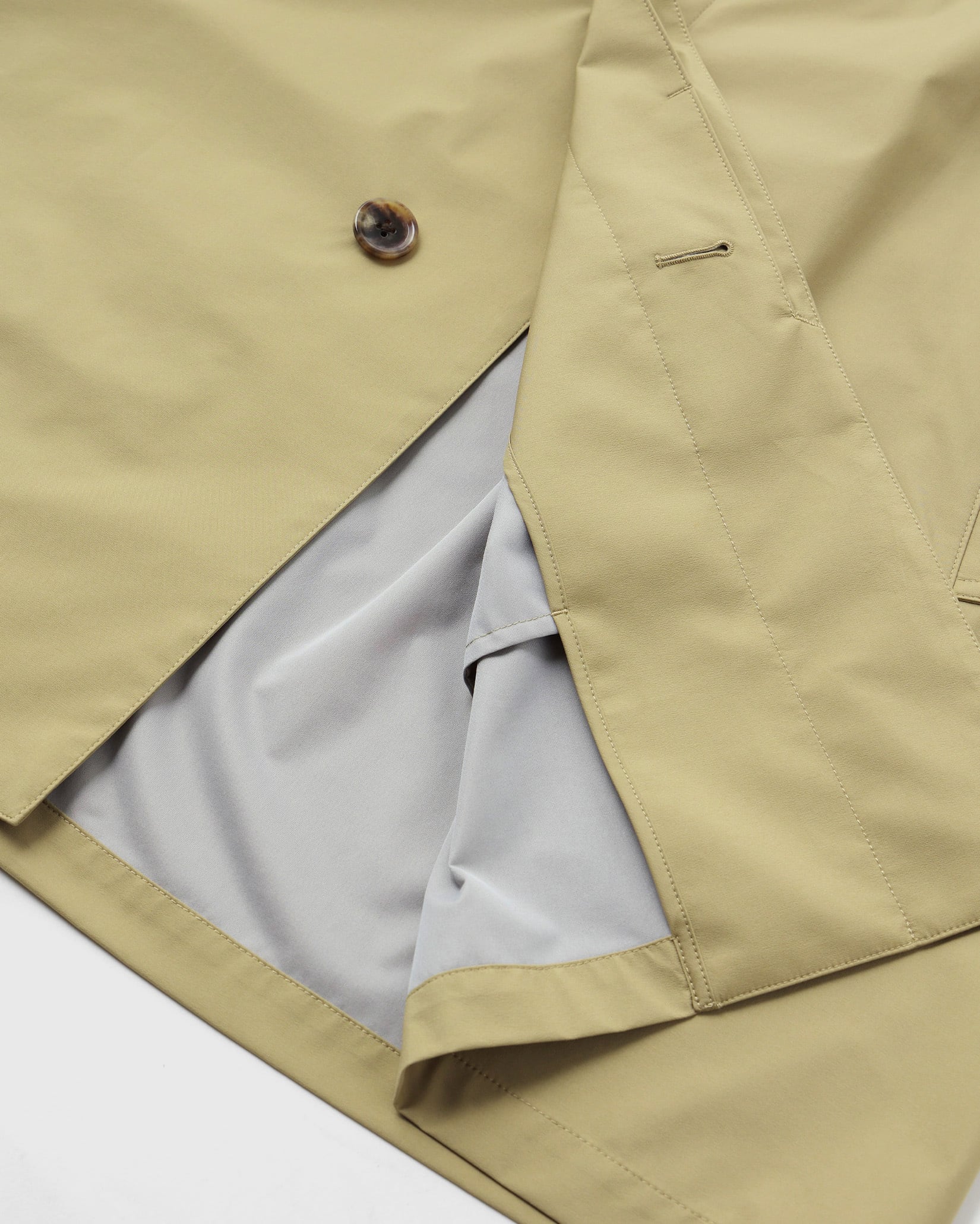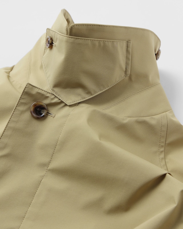 春の立ち上がりに絶対着たくなるアイテム、スプリングコート。でもすぐ着れなくなるしな…なんて思う方も多いかと思い、シーズン問わず使えるように撥水性のある3レイヤーの生地を使ってコートを作りました。防風性と撥水性があるので、春の風雨を凌げると同時に非常に軽いのでコート独自の重さをほとんど感じないところも良いところ。ディティールはクラシックなバルカラーコート型なので、スーツの上から、フーディーと重ねてなんて着方も色々と考えられそう。左胸にはリフレクタープリントのロゴ入り。