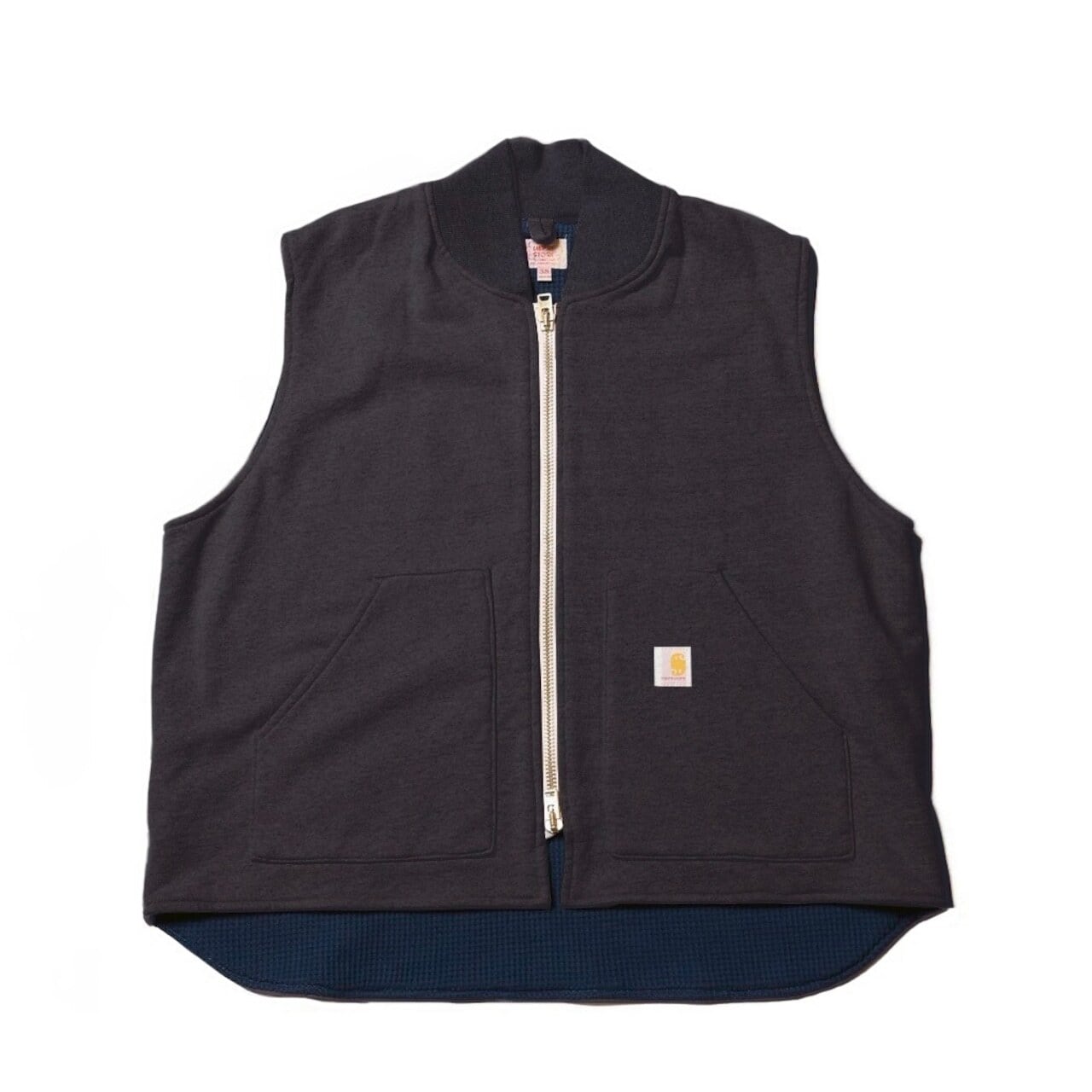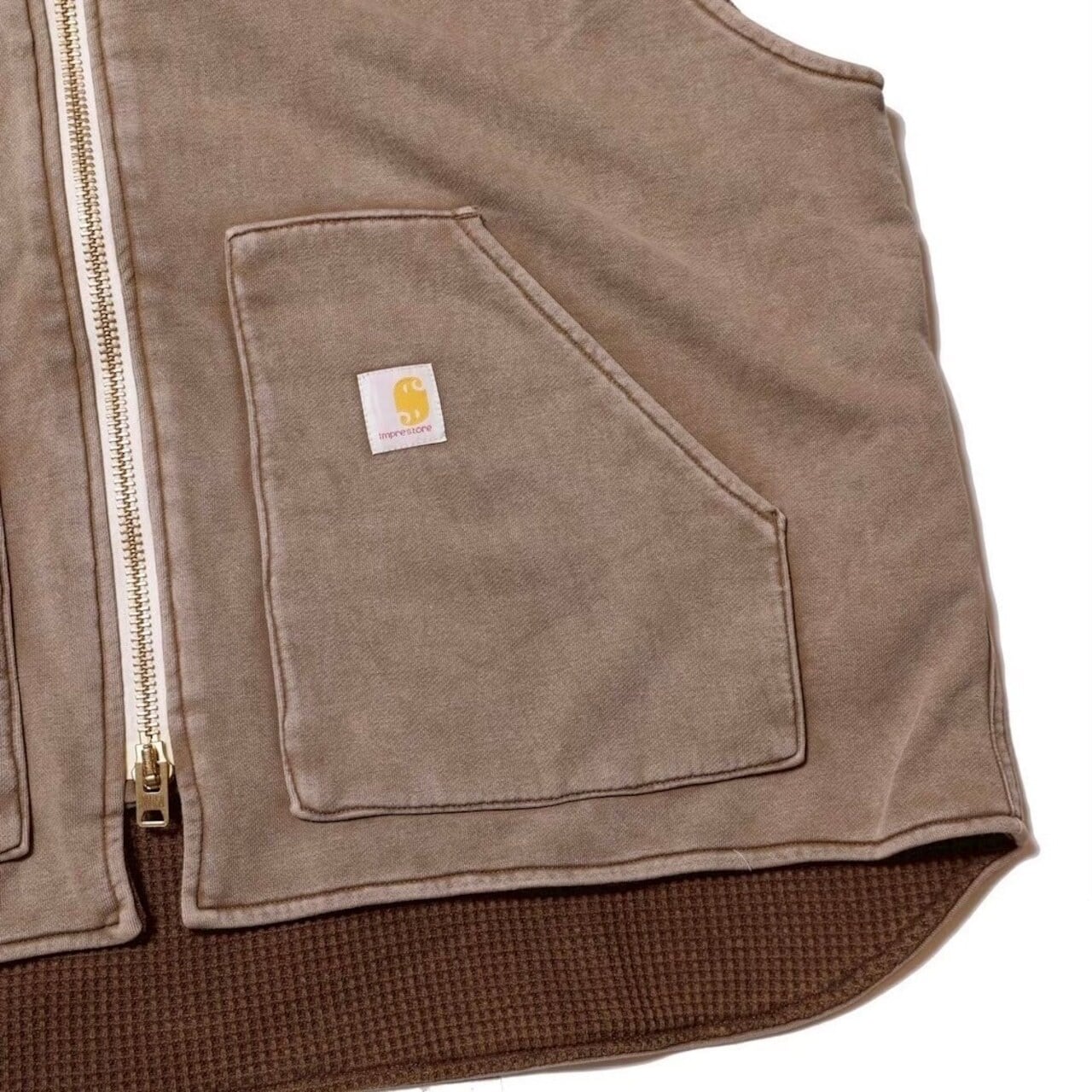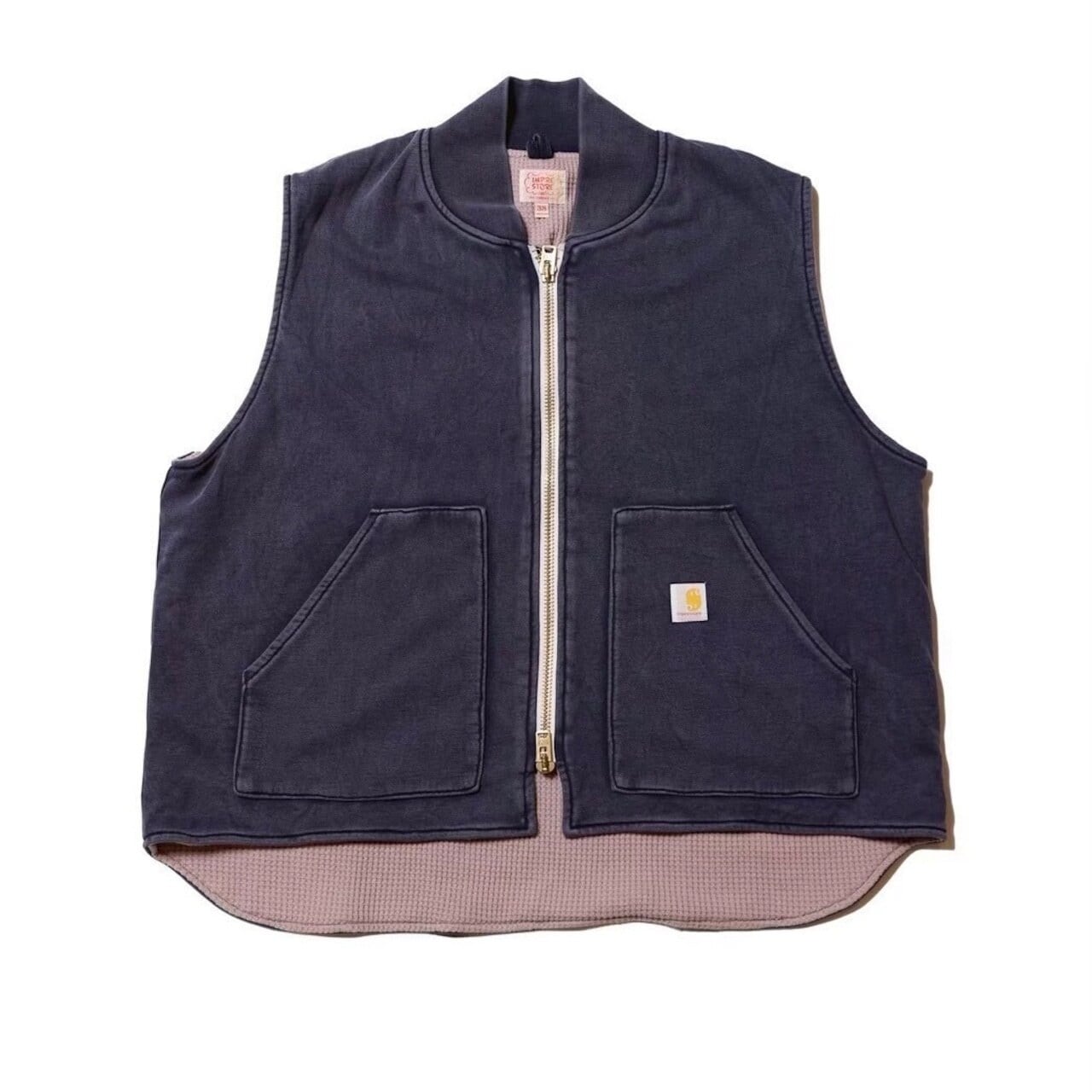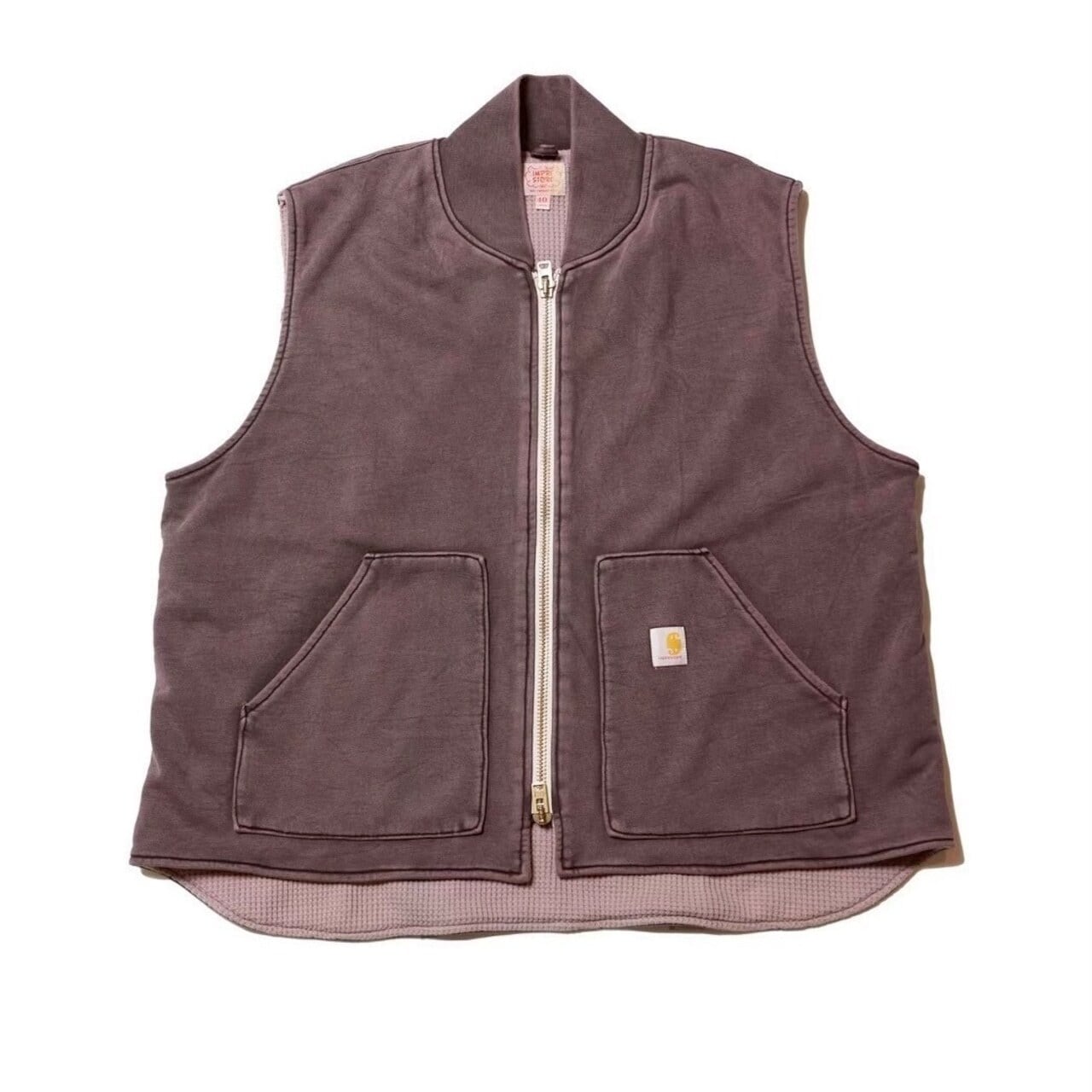 古着で見かけるダック地のあの色褪せて当たりの出てる雰囲気を特殊な加工でビンテージ風に仕上げたスウェットverのベストです。