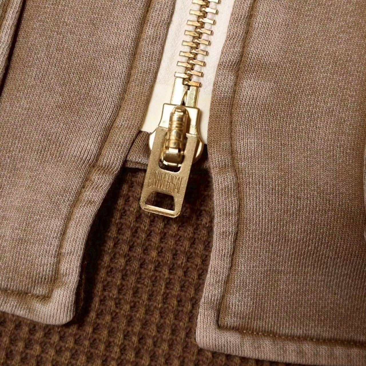 遠目から見ると結構ダック地に見える位のクオリティ。ベストはダブルZIP。地味に嬉しいポイント。見た目はワークウェアなのに着心地はスウェットなので凄く楽。本家のダック地の良さもありますがあれは硬くてごわつくから苦手だなーって方には最高かなと思います。