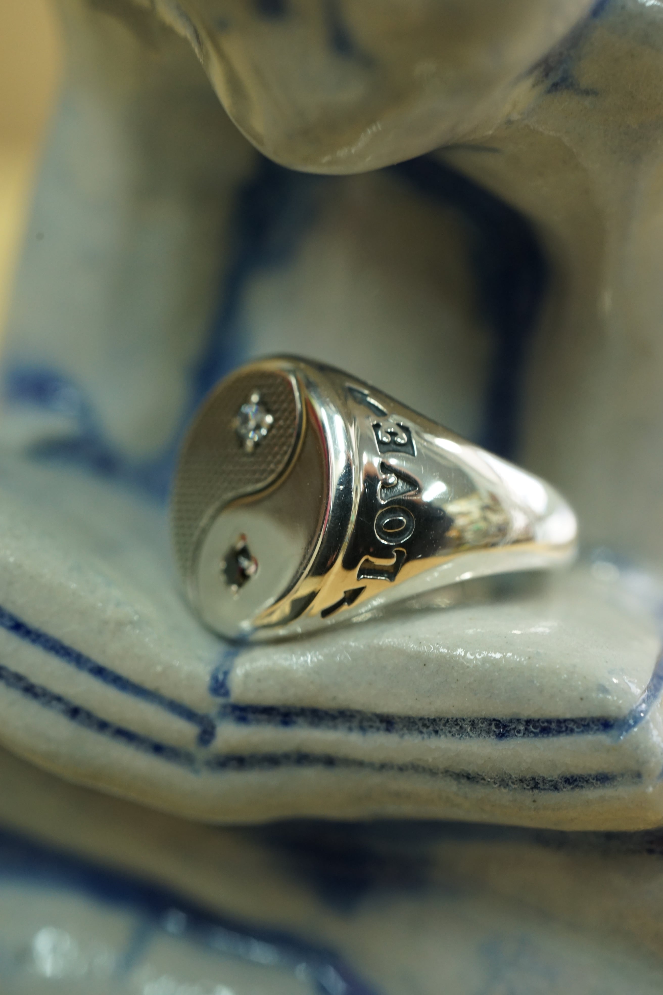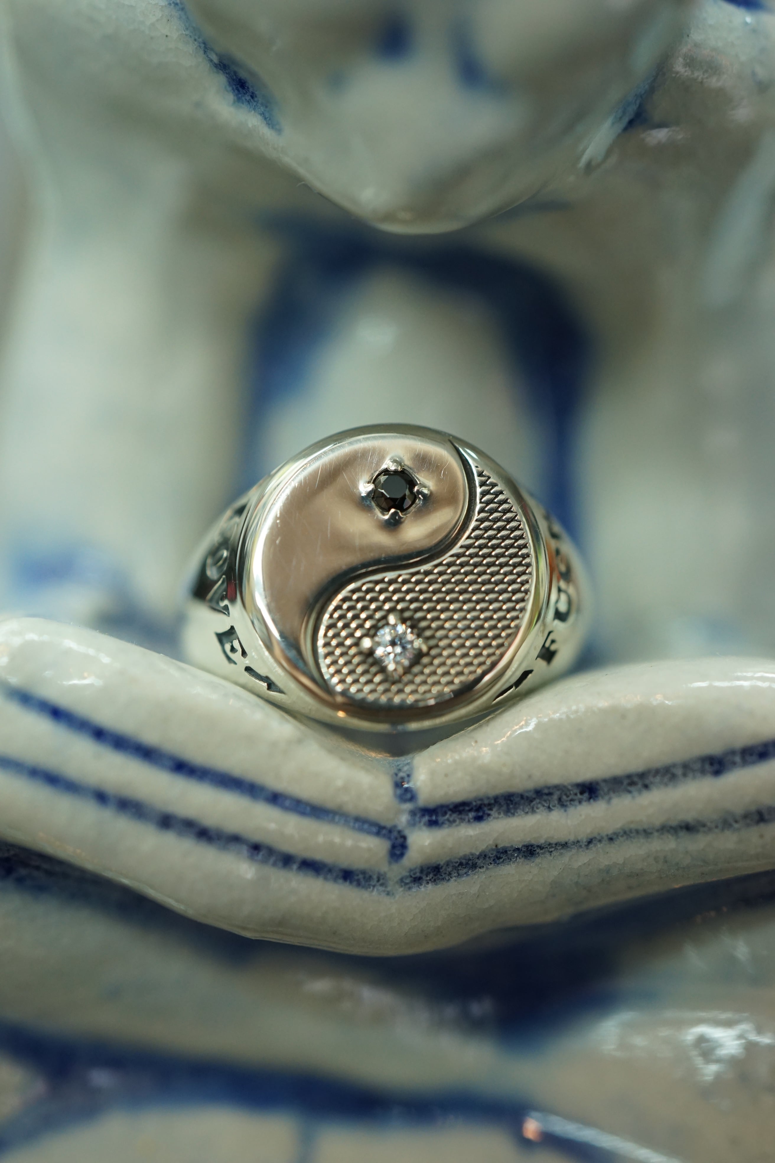 今回は以前リリースされたYin-Yangネックレスをリングに落とし込んだイメージで作られたピンキーリングになります。