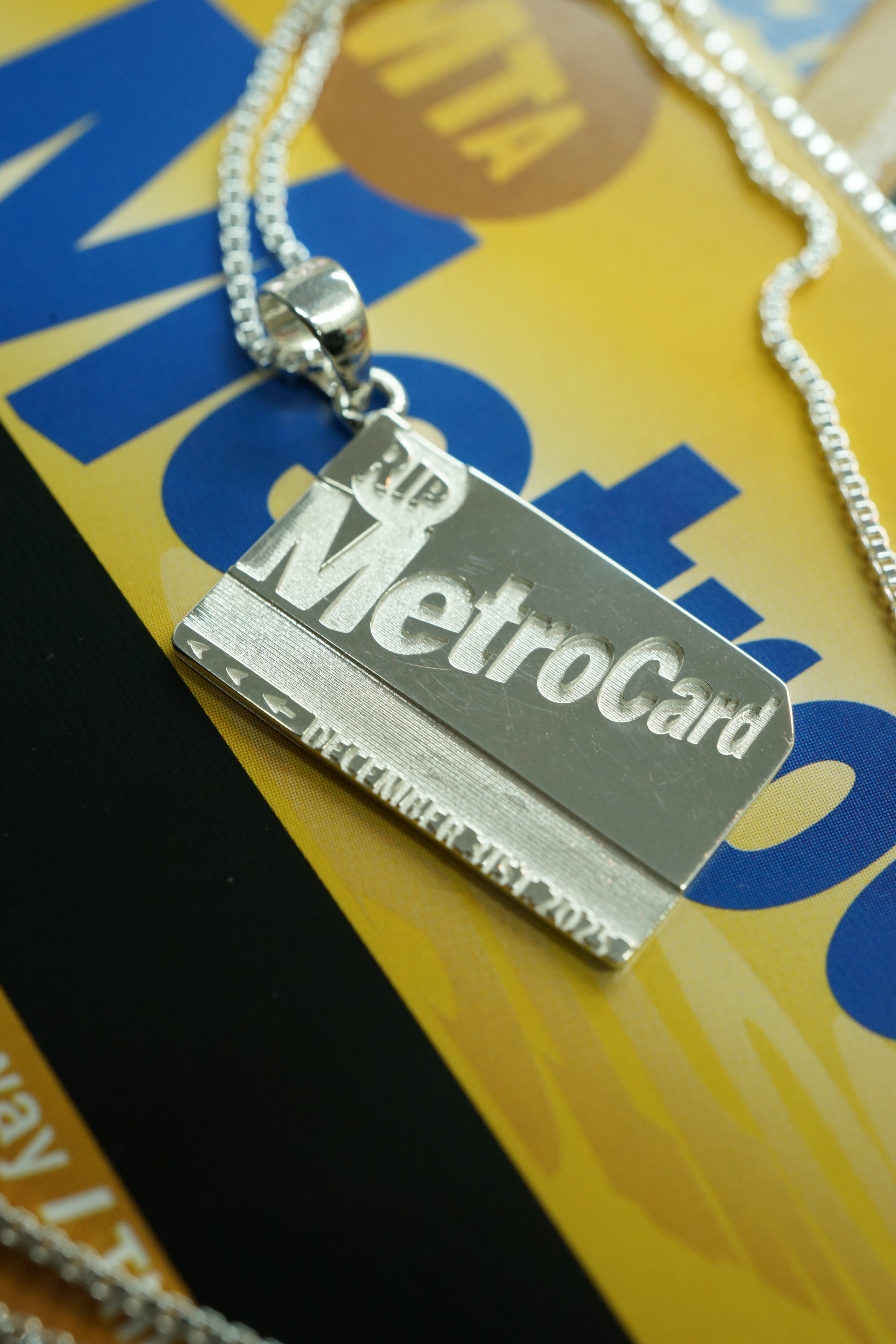 本来MTAと文字の入る所をRIPにしてカード下の部分には去年の末で廃止という事でDECEMBER 31ST,2025と日付が入ってます。メトロカードデザインそのままと思いきや、おっ。となる小さな遊び心が落とし込まれたネックレスです。
