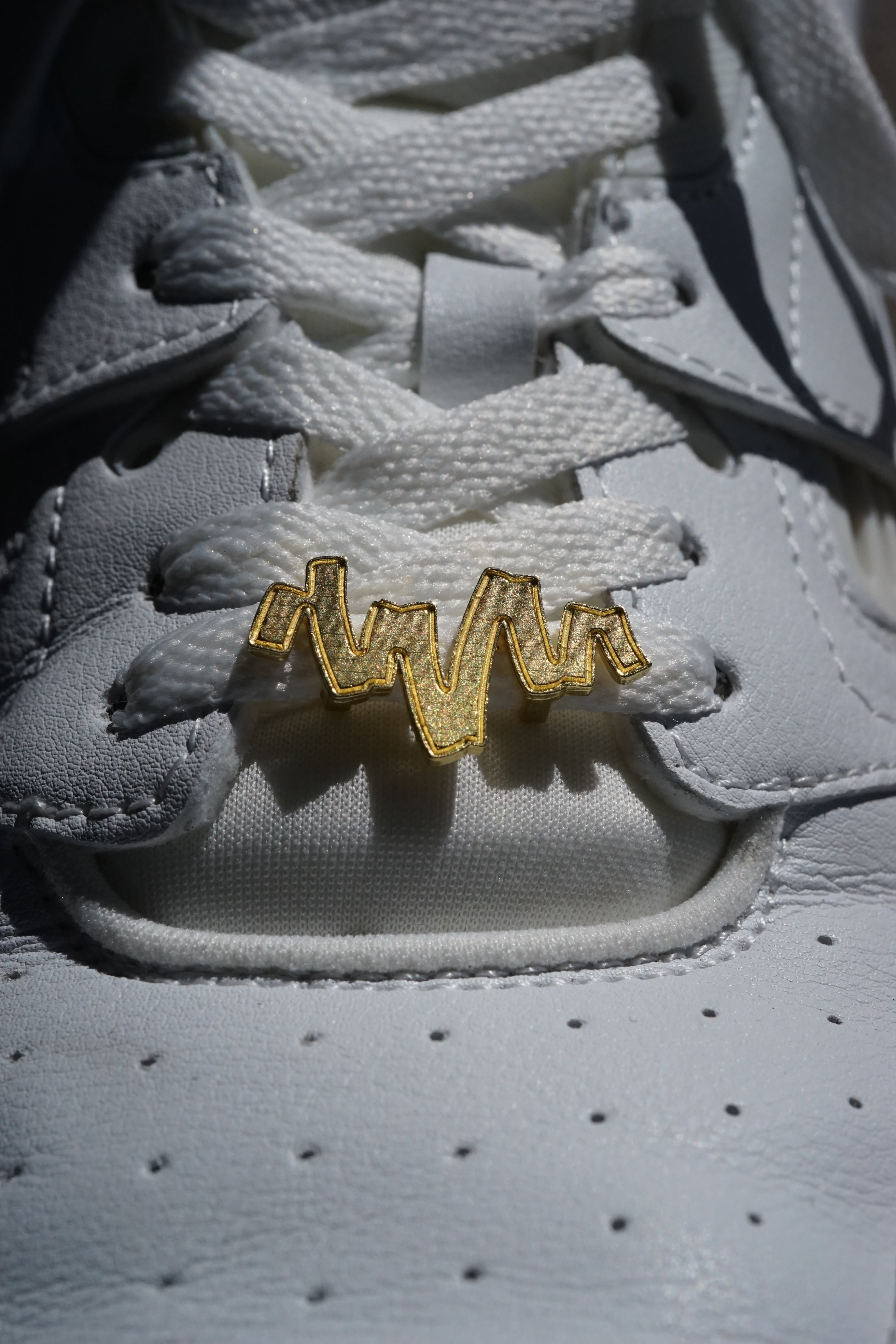 アーティストのOKIさんとIN-PUT-OUTのコラボシューズアクセサリー。こちらは真鍮製でシューズの靴紐に通して付けるタイプです。デザインはOKIさんのアイコン的なデザインでもある"UNE"マーク。いつも履いているシューズに良いアクセントを加えてくれるアイテムです。